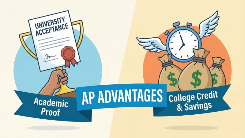 なお、アメリカの大学では、APで高得点(主に4または5)を取得した場合、入学後に大学初年度レベルの科目として単位認定や履修免除が認められることもあります。