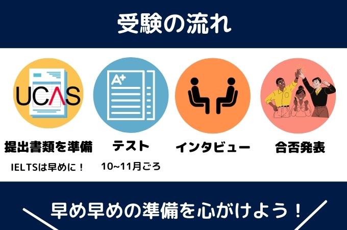 自分が出願する学部に必要なアドミッションテストが何なのかを調べ、テストの内容を把握しておくといいかと思います。