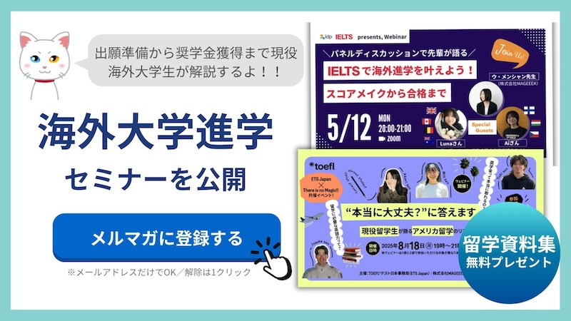 miさんコメントありがとう!今すぐにはできないけど、近い将来海外大学の情報もどんどん出していきたい!みんなも情報提供してくれるとありがたい!!